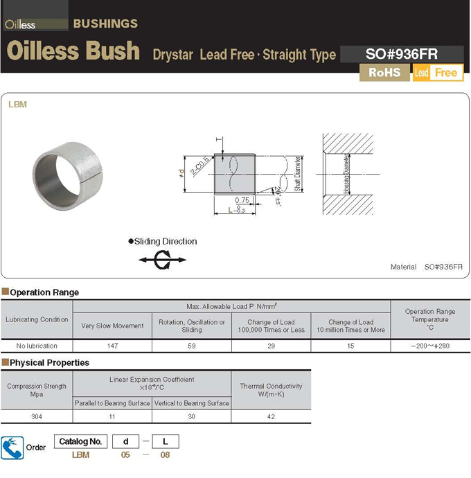 LBM : Bạc tự bôi trơn - chịu nhiệt - Oilless Bush Drystas Lead Free Straigh Type