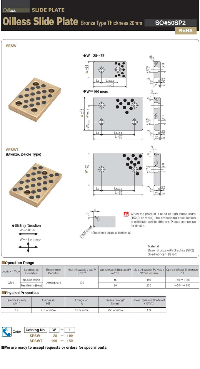 SESW - SESWT   :    Tấm trượt tự bôi trơn - Slide Plate Bronze Thinkness 20mm