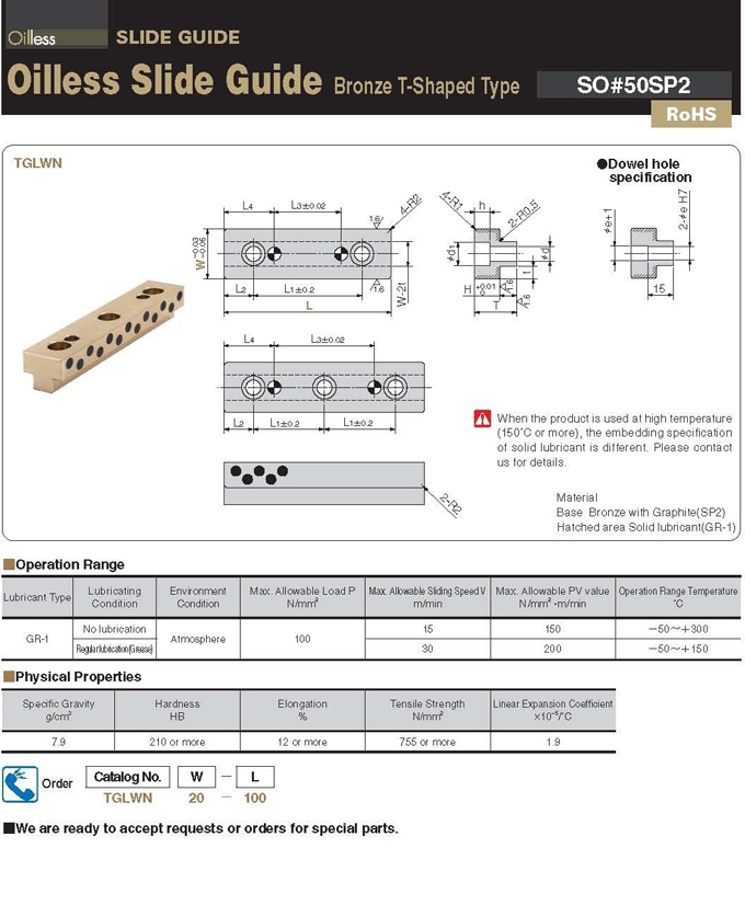 TGLWN : Thanh trượt tự bôi trơn - Slide Guide Bronze T-Shaped type