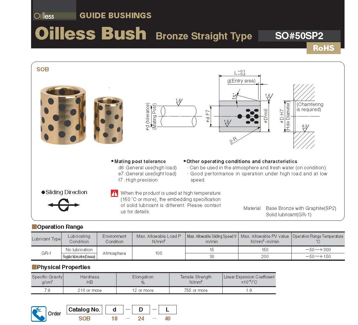 SOB   :    Bạc đồng tự bôi trơn - Oilless Bushings