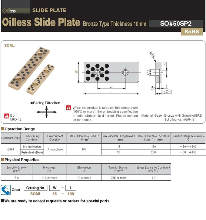 SOML : Tấm trượt đồng tự bôi trơn - Slide Plate Bronze, Thickness 10mm